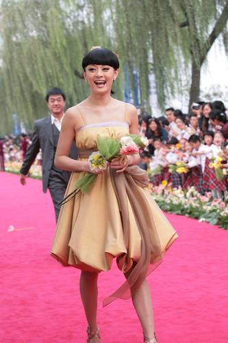 2006年10月28日下午,金鸡百花电影节最受人瞩目的仪式——百花大道在杭州的白堤上浪漫延伸,孙俪娃娃装娃娃头 亮相百花大道俏皮又可爱。