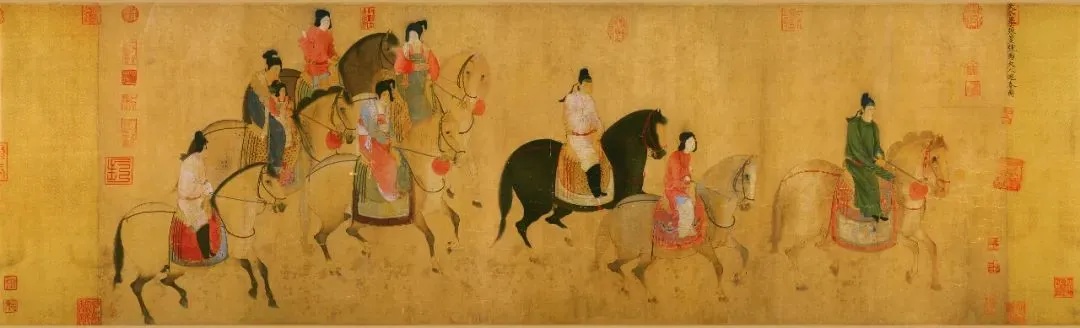 本图为《虢国夫人游春图(5102*1286)》纵51.8厘米,横148厘米,辽宁省博物馆藏