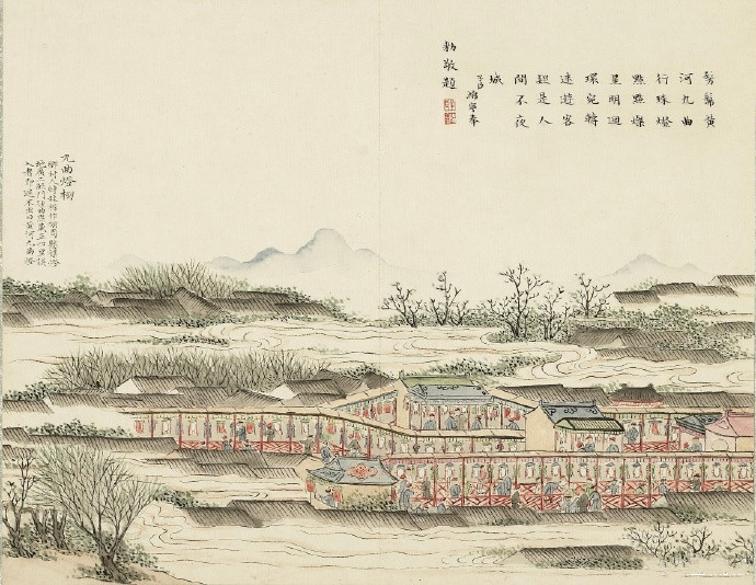 乡村人缚秣秸作棚,周悬襍灯。地广二亩,门径曲黠,藏三四里,误入者即迷不出,曰“黄河九曲灯”。