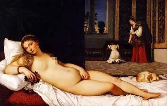 这幅作品是文艺复兴后期的艺术家提香创作于1538年的一副油画。该画受乔尔乔内《沉睡的维纳斯》的影响,显示了希腊神话爱神维纳斯赤裸沉睡的情景。作家马克·吐温册这样评价这幅《Venus of Urbino》(《乌尔比诺的维纳斯》),“它是一幅下流、卑劣和淫秽的但受全世界欢迎的作品。在描绘妓院,但是它有可能因为本身太琐碎又华丽而被不接受”。马克·吐温还富有幽默感地说到:“事实上,它除非放在公共艺术展览馆里,在其它地方这幅画都只会是华丽的小玩意儿”。