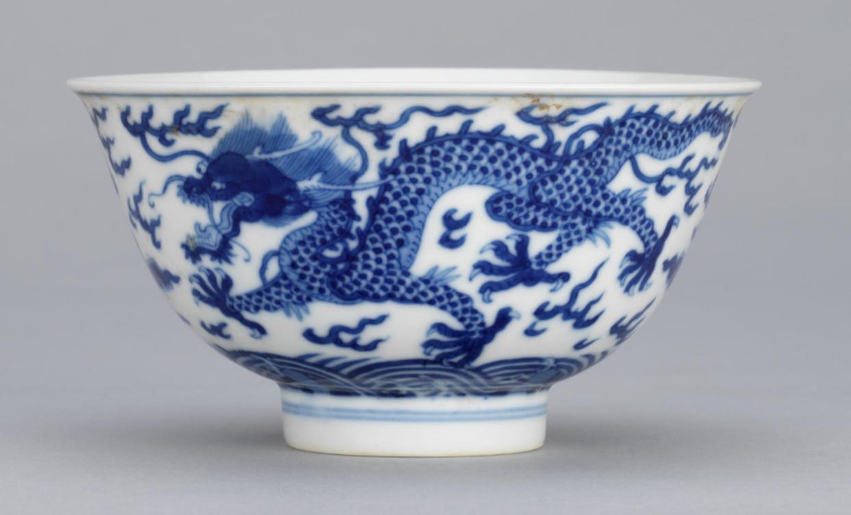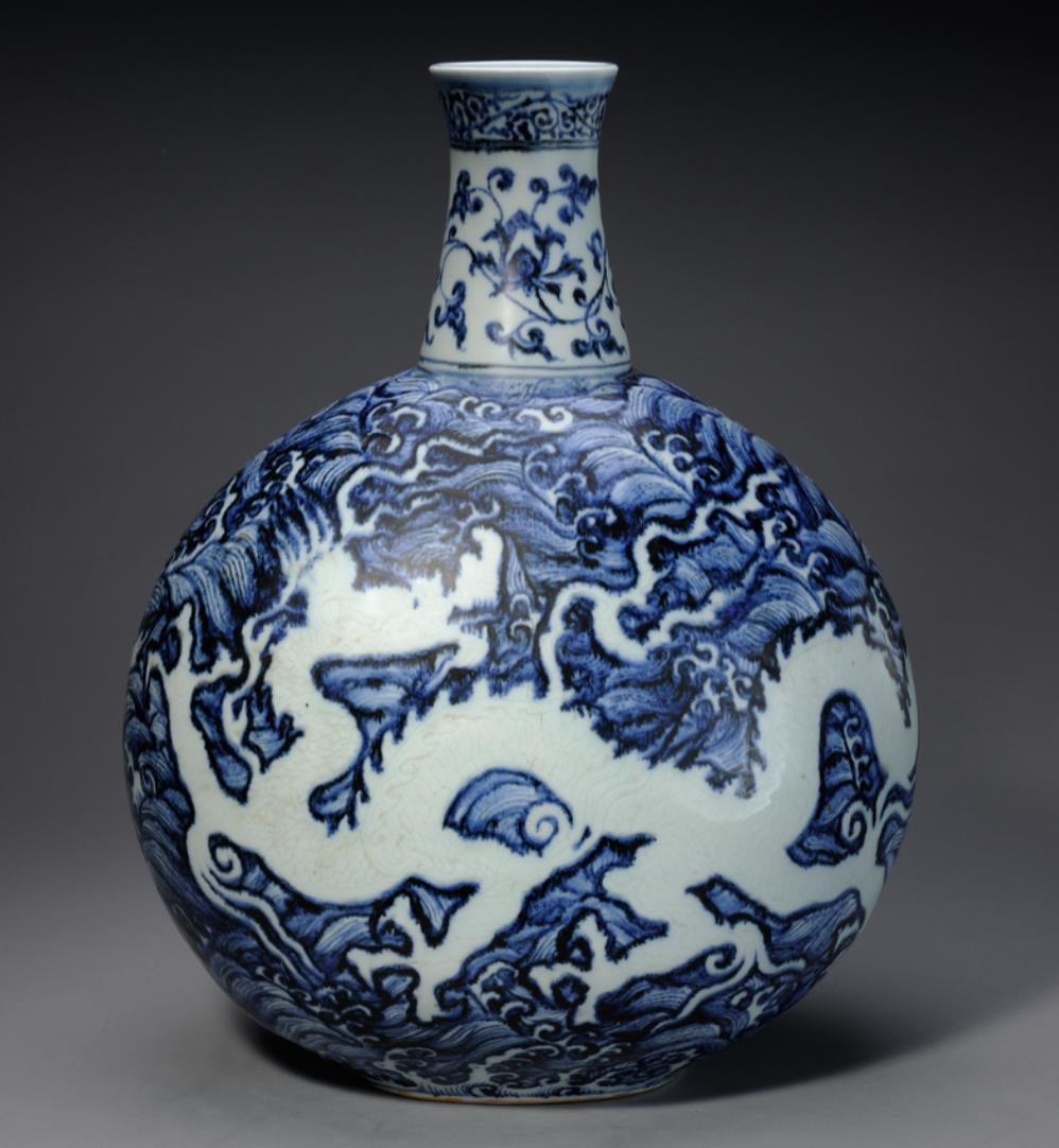 自元代始,龙纹便被绘于青花瓷上,凶猛、强势,符合元朝政府武治的特征。