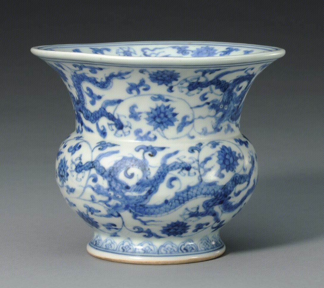 随后的明清时期,青花瓷纹饰中的龙纹越来越多,尤其是在官窑中。随着时间的前进,各朝各代虽龙的形态各有不同,但龙纹绘画越来越精细,是不争的事实。