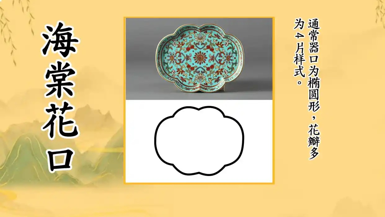 海棠花口,通常器口为椭圆形,花瓣多为4片样式。