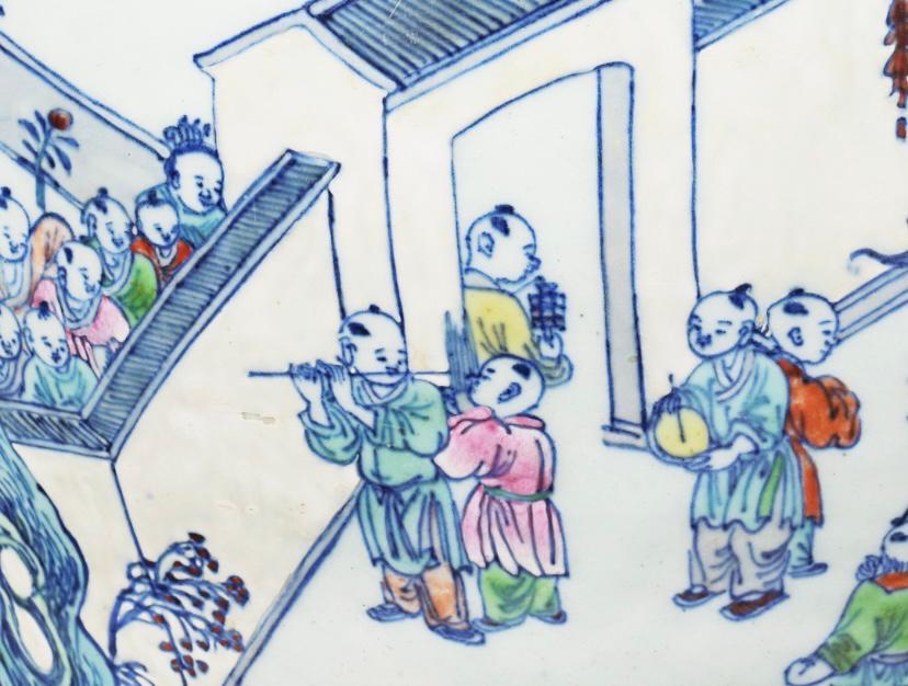 清代青花斗彩百子闹春图大罐