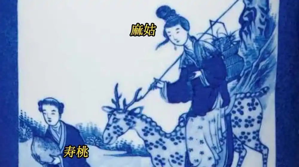 典故:麻姑又叫寿仙娘娘,道教中的传说人物。民间传说农历三月初三是王母娘娘的寿诞,有一次麻姑应邀带着自酿的灵芝酒和寿桃赴宴祝寿,这个故事就被称为“麻姑献寿”。