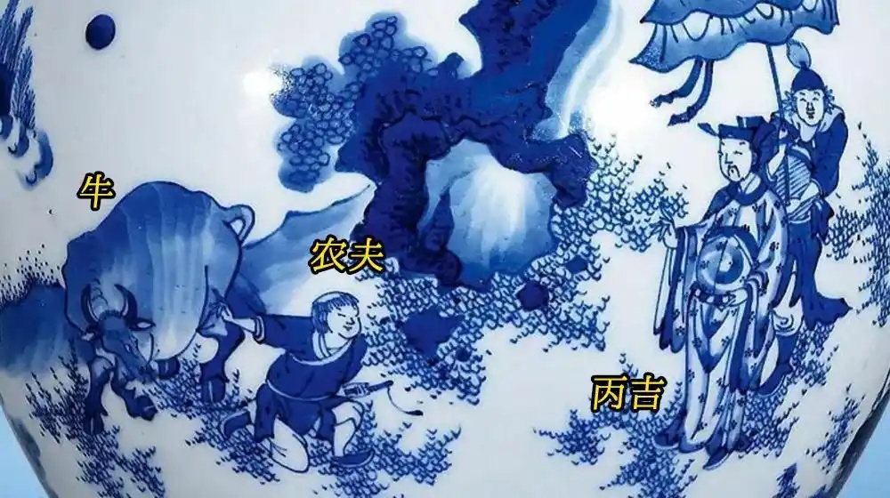 画片特征:以山野为背景,画片中必有牛、农夫和丙吉丞相,丙吉身后通常绘随从数人。