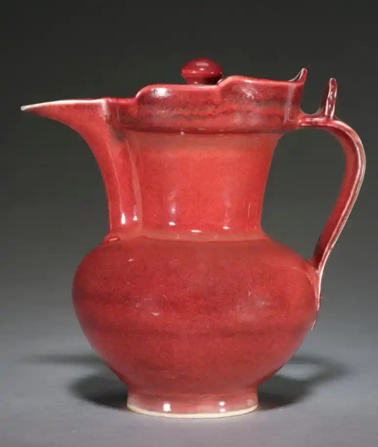 元代景德镇成为中国新的制瓷中心,元人除了喜好白蓝两色,亦对红色尤其热爱,这象征着太阳与火的颜色,给人以温暖和希望。都知道元代青花传世稀少,如今都价格不菲,通体施红釉的瓷器更是凤毛麟角,故宫馆藏红釉刻云龙纹壶,红釉热烈均匀,堪称是元代完美的红釉作品。