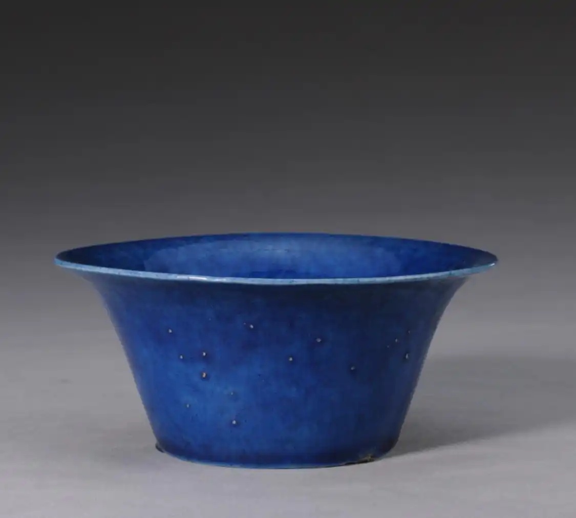 孔雀绿釉,又叫“法翠釉”“翡翠釉”。发色浓烈艳丽,釉面多明亮通透,看着像孔雀尾巴上漂亮的羽毛,所以得名。