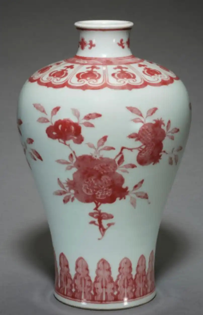 梅瓶器形特征明显,小口短颈,丰肩瘦底。“梅瓶口细而颈短,肩极宽博,至胫稍狭,抵于足微丰,口径之小仅与梅之瘦骨相称,故名梅瓶”——《饮流斋说瓷》。