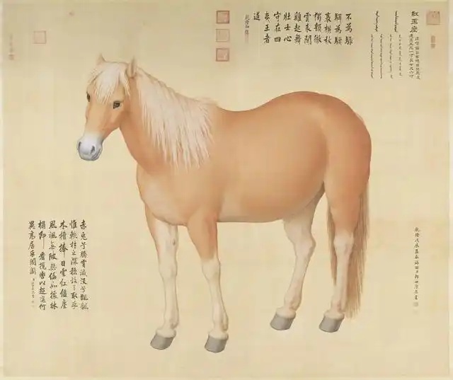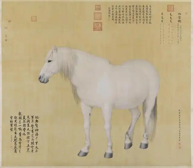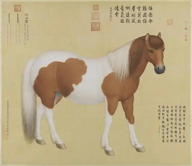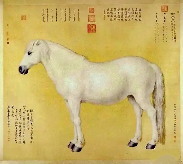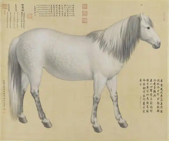 乾隆八年,郎世宁奉旨绘制十匹骏马的肖像,十幅《马图》大画依照真实的骏马大小所绘。