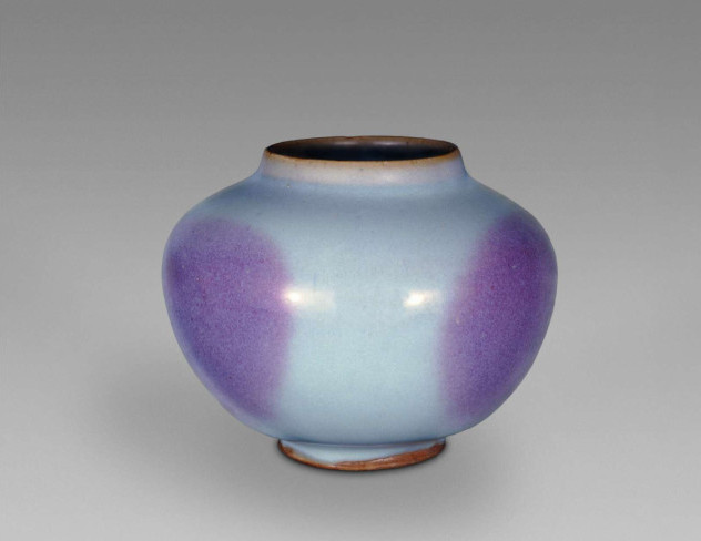 宋 钧窑月白釉紫斑鸡心罐 大英博物馆藏