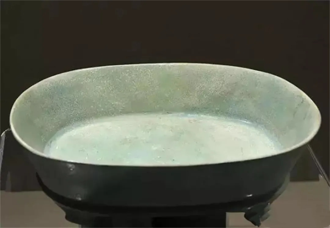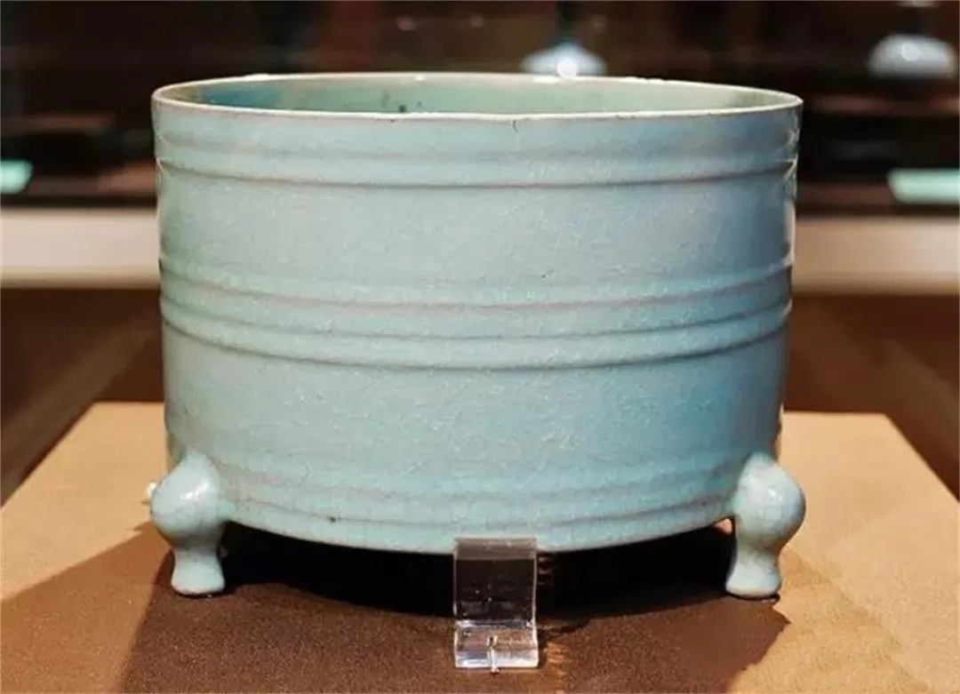 (北宋清凉寺汝瓷呈现的所谓的“肉红色”或“铜骨”只是一种偶然现象,而且也只会出现在标准的“天青色”釉上。一种是出现在凹凸不平的釉面上,如上图1汝窑莲花温碗,另一种是出现在器物旋纹上凸的釉面上,如下图2三足旋纹尊。——编者注)