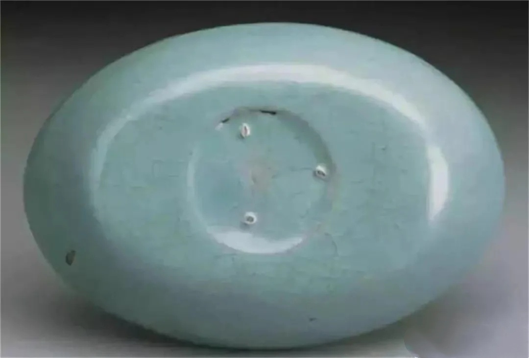 明代高濂《遵生八笺》(卷四十)“论官哥窑器”条曰:“汝窑,余尝见之……底有芝麻花细小支钉。”对照实物看,高氏的说法是正确的。传世汝窑瓷器外底绝大多数都有芝麻粒大小、芝麻粒形状的支钉痕,个别瓶、盏托、熏炉等例外。有的器物用3个支钉支烧,有的器物用5个支钉。留有6个支钉痕的器物见于台北故“宫博物院”、日大阪市立东洋陶瓷馆美术收藏以及窑址出土的椭圆形水仙盆上。
