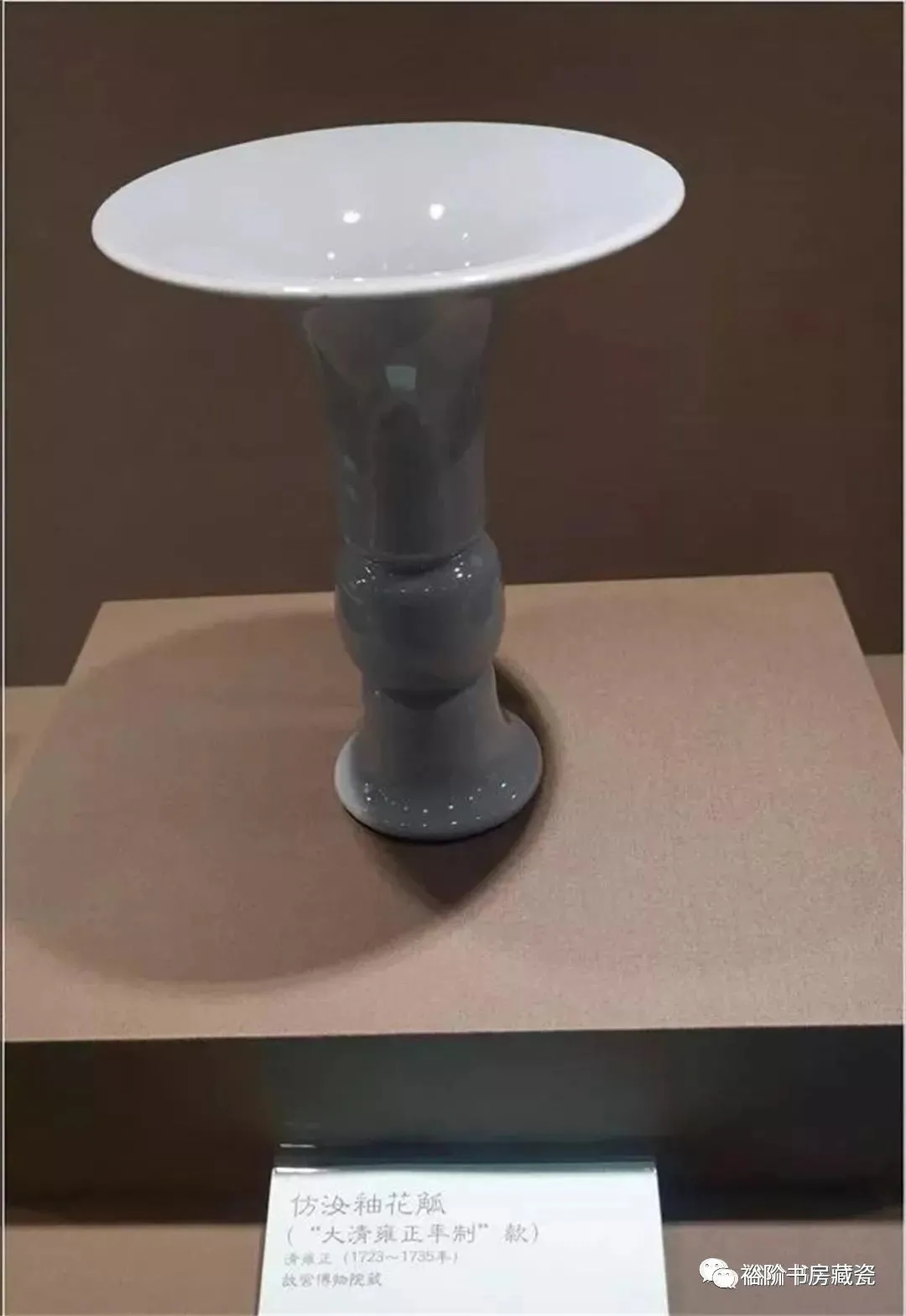 造型方面,仿品显得呆滞,缺乏神韵。尤其是采用注浆成型者,更缺乏神韵。所仿汝窑三足弦纹樽往往胎体过厚。笔者曾问仿制者为什么不将胎体做薄些,回答说是胎体做薄了极易变形。看来还是胎体配方存在问题。另外,臆造的器型也很多,尤应引起注意。
