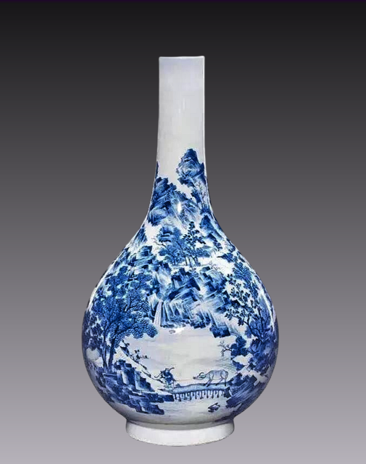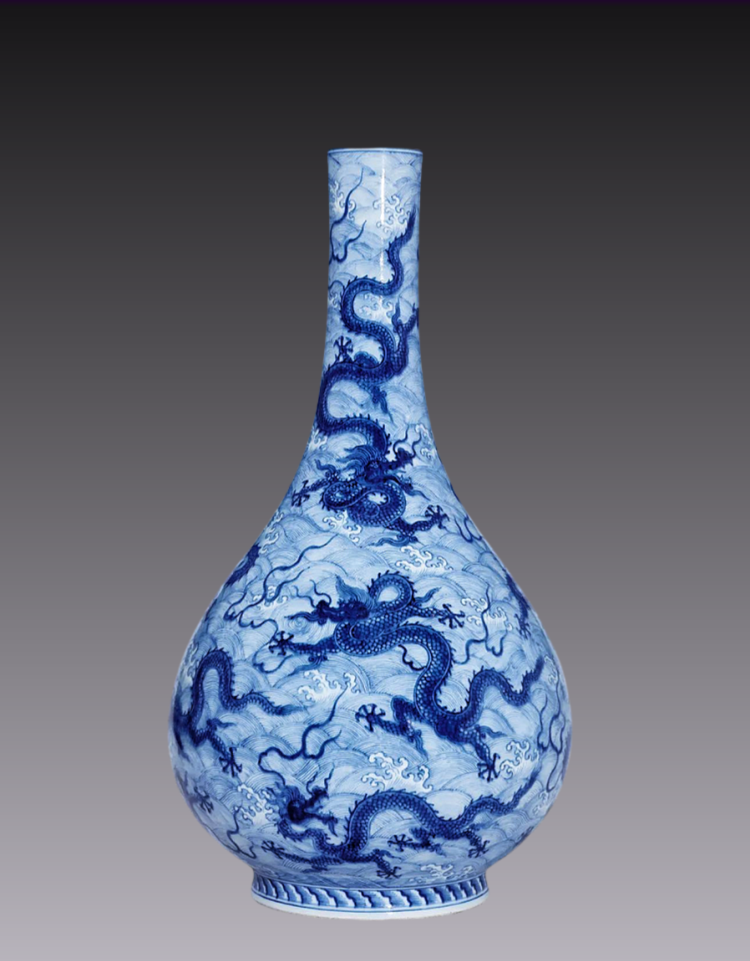 9、清乾隆青花「穿花游龙」图长颈胆瓶