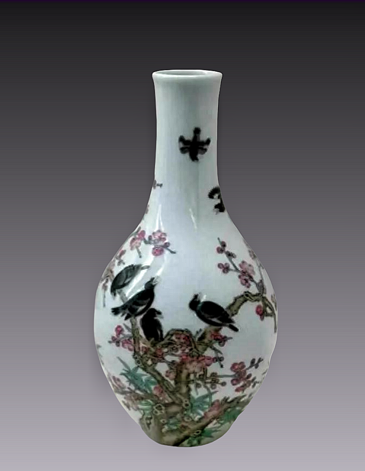 13、清乾隆瓷胎画珐琅八哥胆瓶 台北故宫博物院