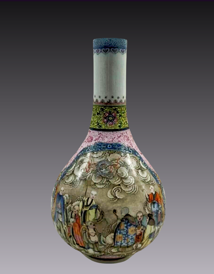 16、清乾隆十年洋彩人物胆瓶 台北故宫博物院