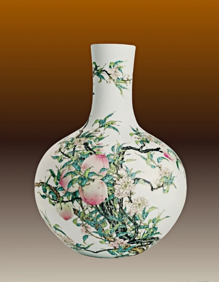 3、历年拍卖第三名 清乾隆 粉彩九桃天球瓶