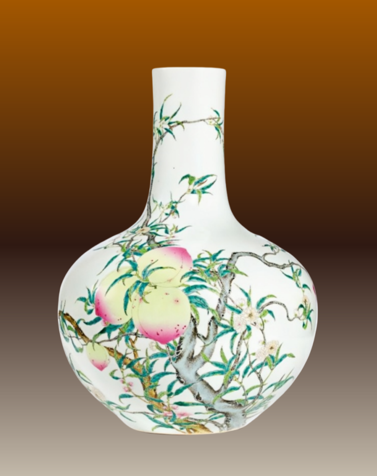 5、历年拍卖第五名 清乾隆 粉彩九桃天球瓶