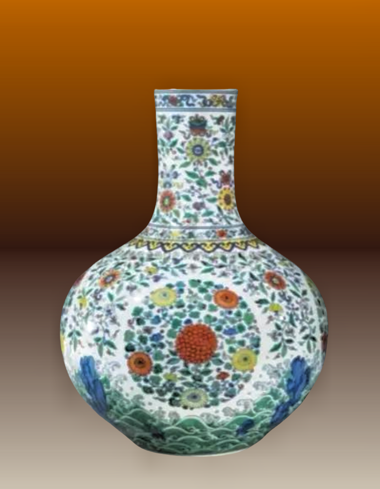 7、历年拍卖第七名 清雍正 斗彩水波寿石团花纹天球瓶