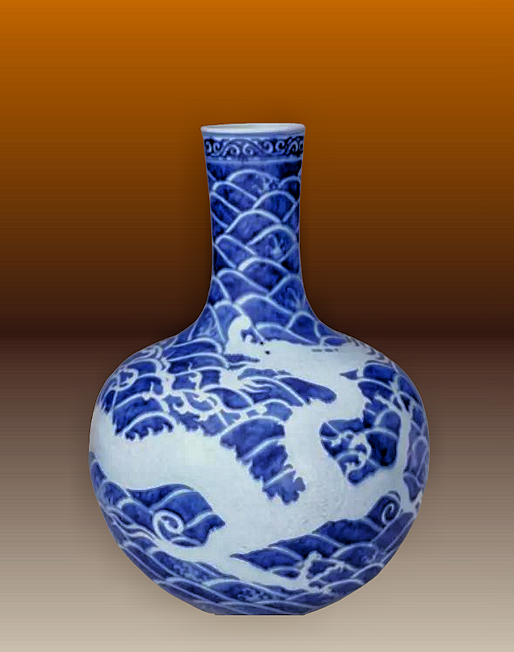 20、清雍正青花海水白龙纹天球瓶 北京故宫博物院
