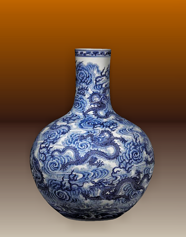22、清乾隆 青花海水云龙纹天球瓶 故宫博物院