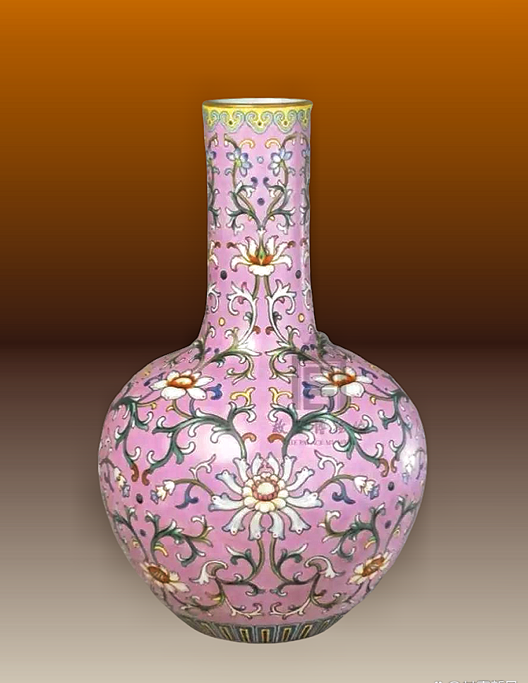 34、清乾隆 粉彩勾莲纹天球瓶 故宫博物院