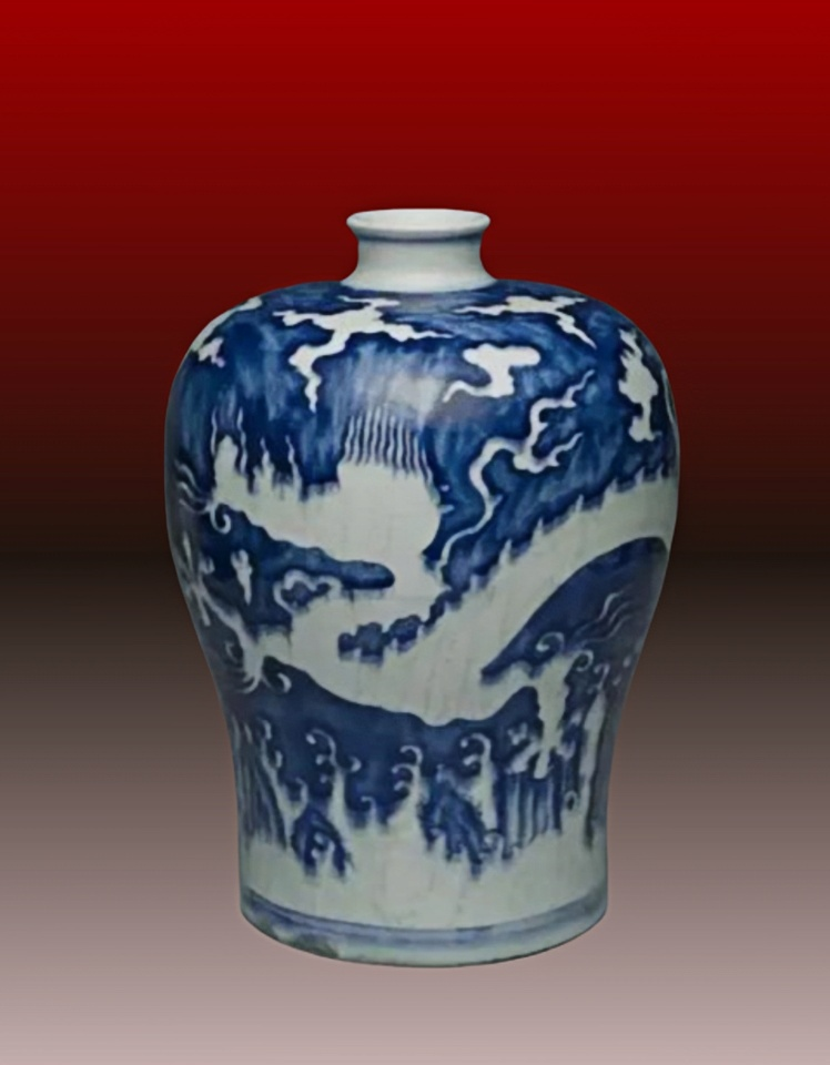 26、扬州博物馆 元霁蓝釉白龙纹梅瓶
