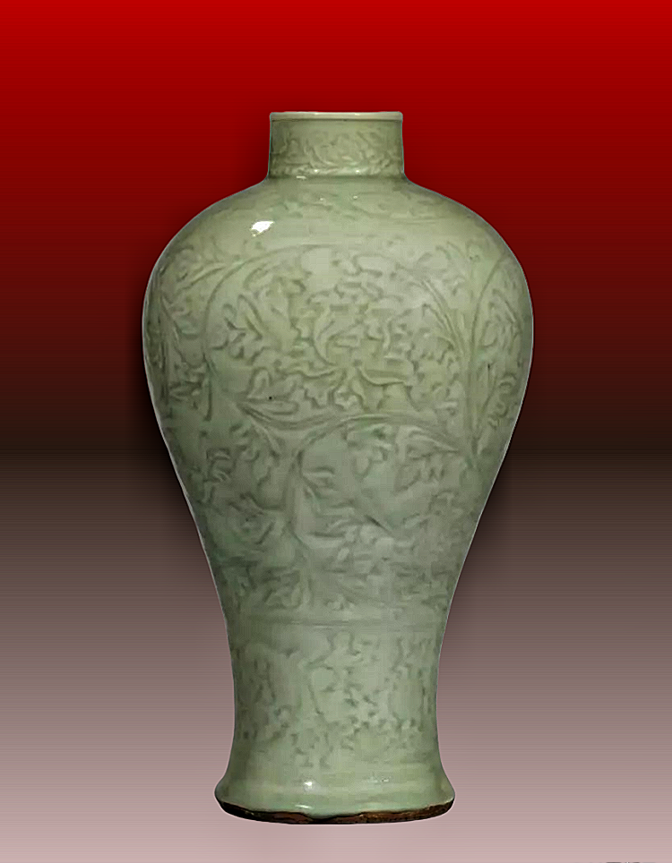 22、明永乐 龙泉青釉缠枝牡丹纹梅瓶
