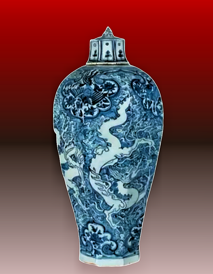 23、河北博物馆 青花海水龙纹八棱带盖梅瓶