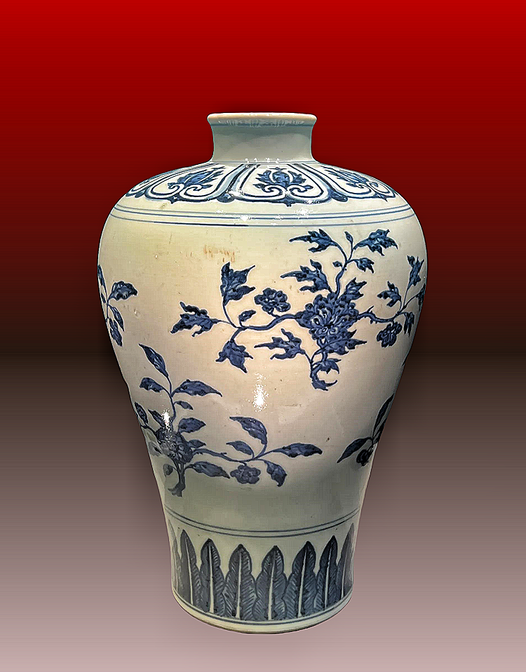 38、明永乐青花如意垂肩折枝花果纹梅瓶 海外