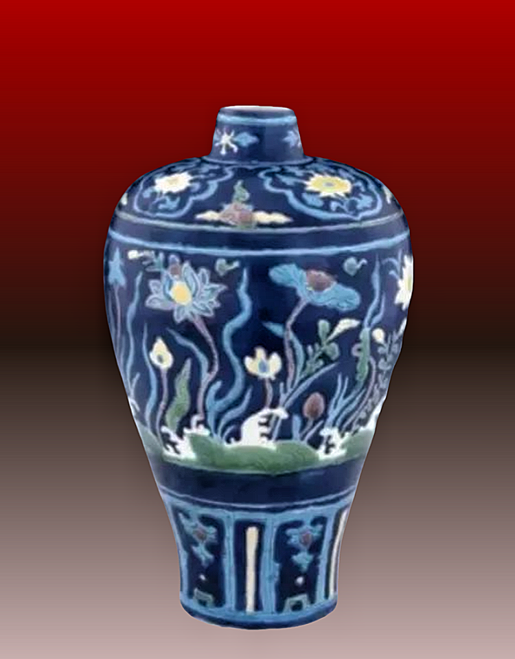 21、台北故宫博物院 明永乐青花刻蓝地白龙纹梅瓶