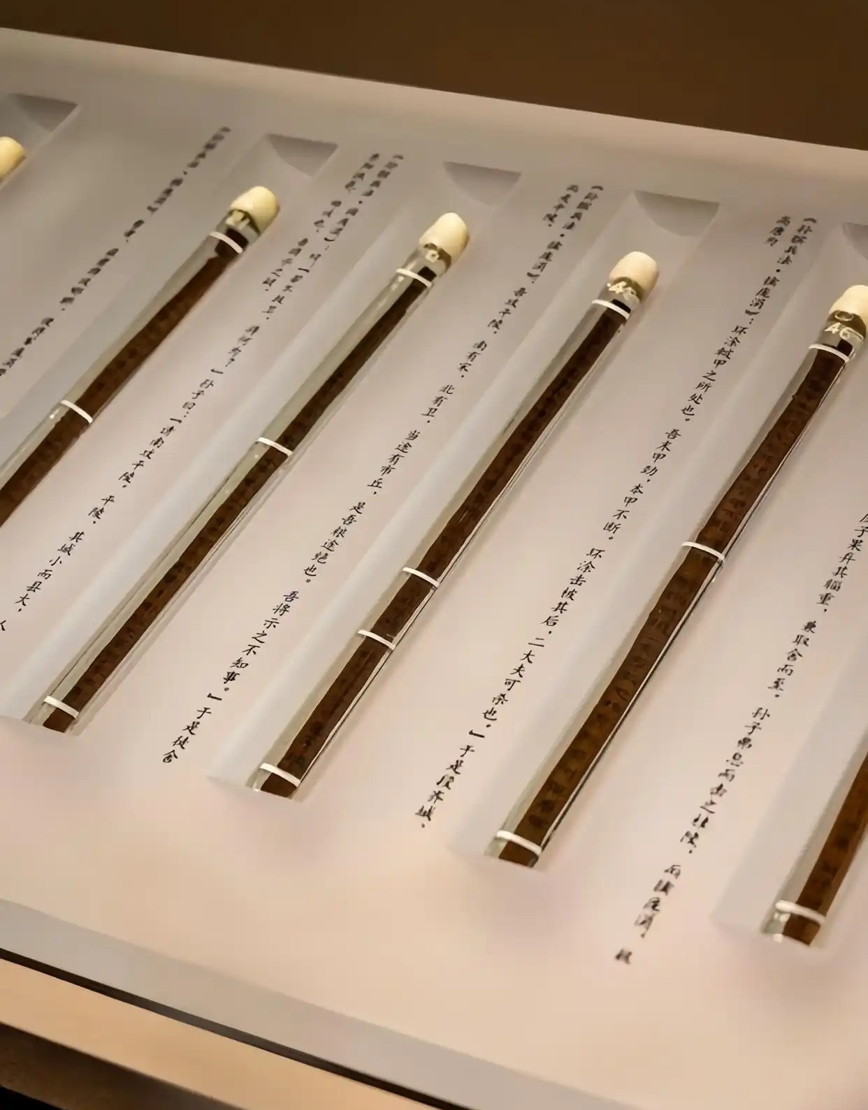 能看到好多根竹简,出土于银雀山汉墓,是新中国30年十大考古发现,与失传近两千年的《孙膑兵法》同墓出土。