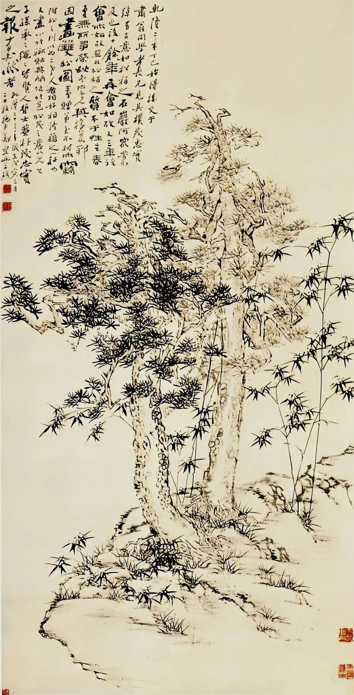 23、清·郑燮双松图轴