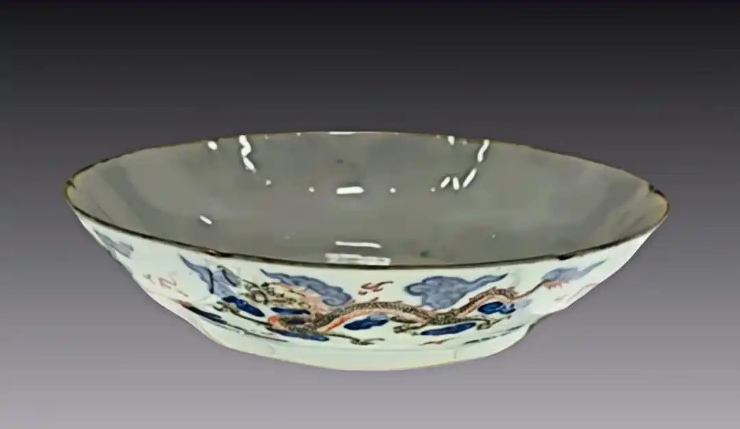将青花与五彩相结合,盘上绘制的云龙纹栩栩如生,龙纹姿态矫健,云纹飘逸灵动,青花色泽淡雅,五彩鲜艳夺目,代表了雍正时期瓷器装饰艺术的高度成就,具有很高的艺术价值和观赏价值3。