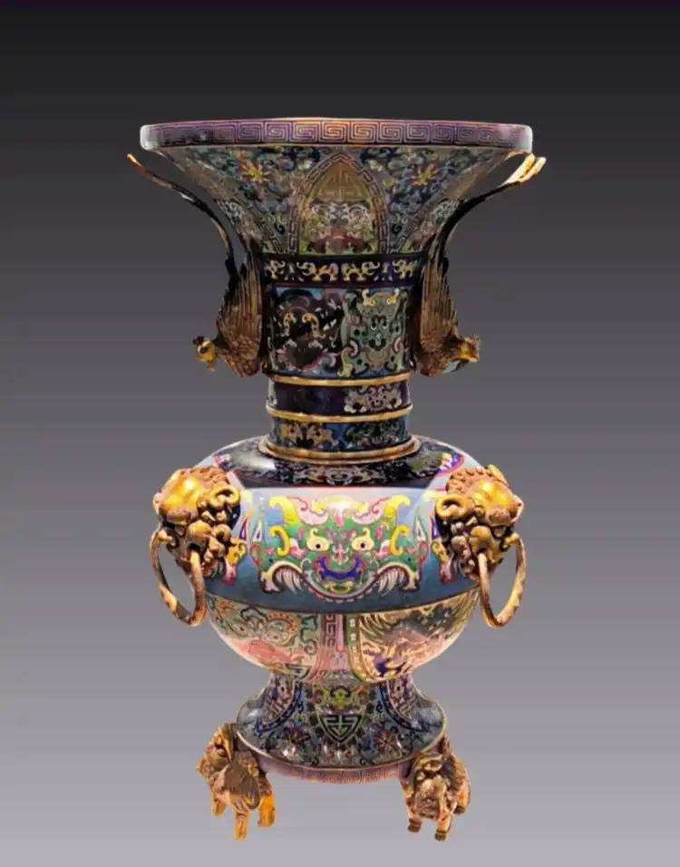 以掐丝珐琅为主要工艺,尊身装饰有精美的花卉、云纹等图案,凤耳造型优美,线条流畅,色彩绚丽,充分体现了乾隆时期掐丝珐琅工艺的精湛水平和皇家风范,是清代珐琅器中的珍品。