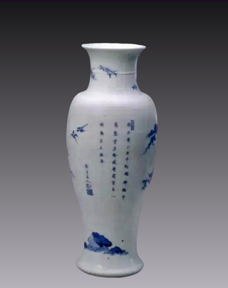 4、清康熙青花松竹梅纹诗句观音