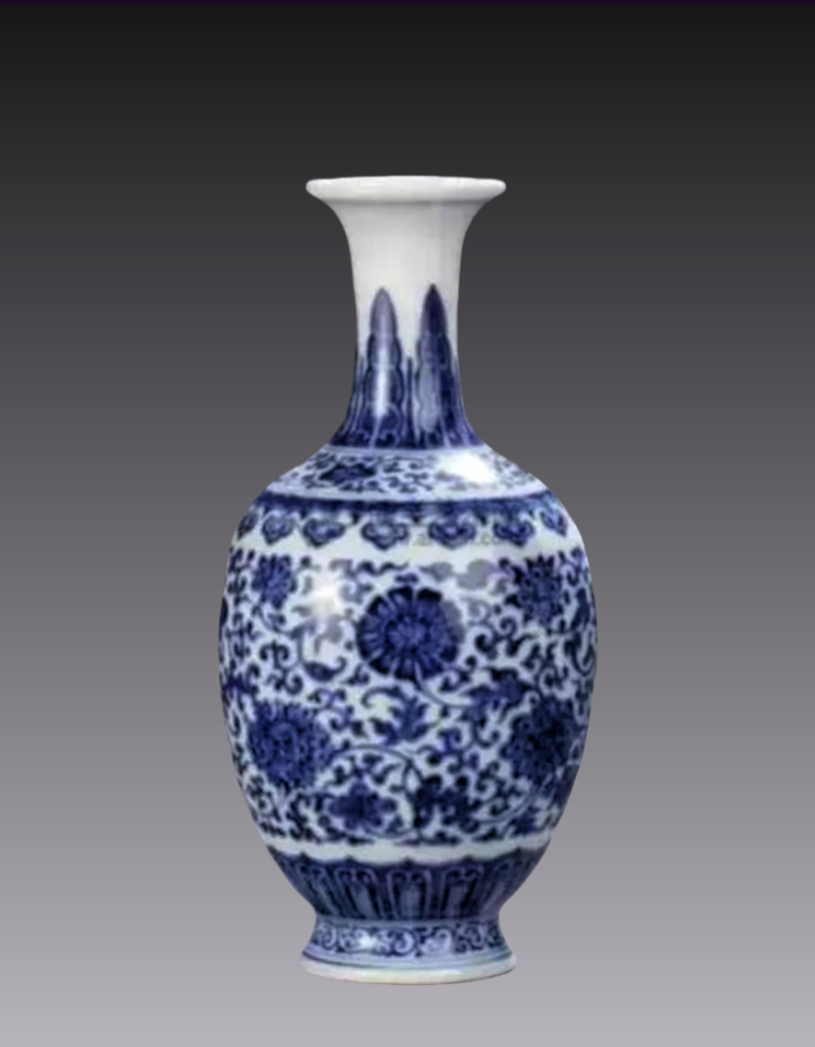 10、清乾隆青花缠枝花卉观音瓶