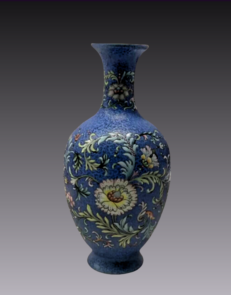 13、清乾隆 瓷胎洋彩蓝地锦上添花观音瓶 台北故宫博物馆