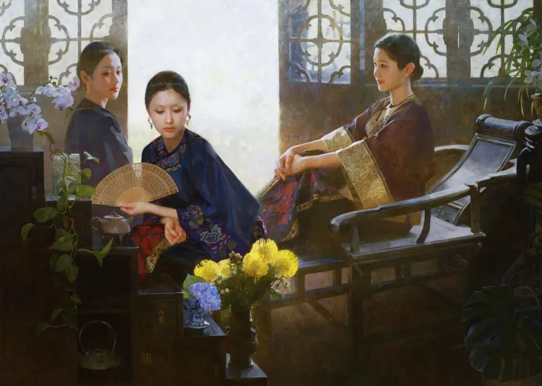 陈衍宁的画,总是透着特有的东方韵味。温婉却不张扬,娴静又极具冲击力。他创作的檀香扇系列,更是被西方评论家盛赞:“真正跨越了文化与历史,呈现了永恒的美感。