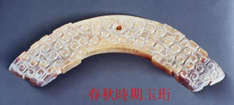 “春秋”是指公元前770年周平王东迁洛邑到公元前476年,计294年。春秋时期诸侯国玉器工艺十分发达,佩带礼玉特别盛行,周是一个崇尚礼仪的国家,故礼玉不少。西周礼玉主要在日用方面,春秋则在佩带方面。春秋时,礼乐崩坏,侯国玉器数量惊人,用玉制度潜越现象严重,各诸侯竞相用金玉佩带,导致了佩带礼玉的兴盛。