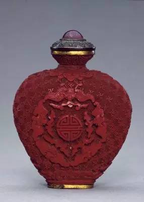 31.红雕漆“五蝠捧寿”鼻烟壶 清乾隆