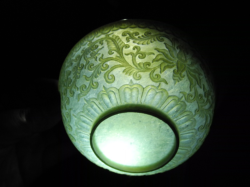 青玉-缠枝纹饰薄胎套壶