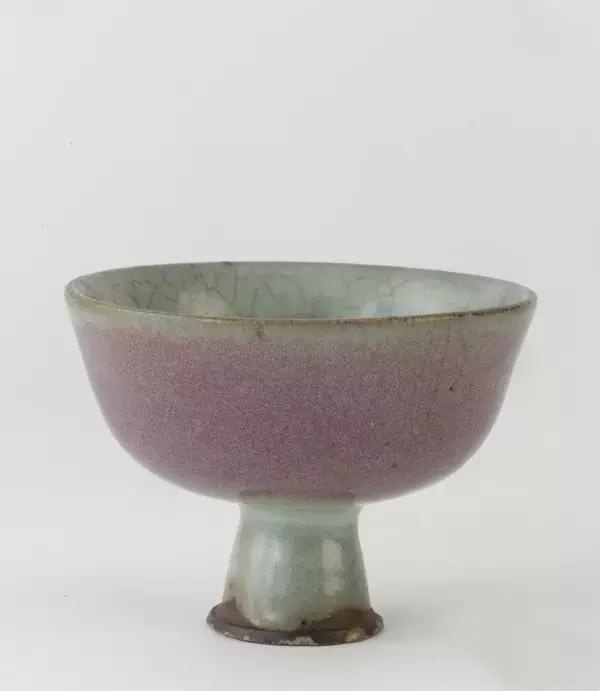 宋钧窑天蓝釉玫瑰红斑诗文花口盘赏析