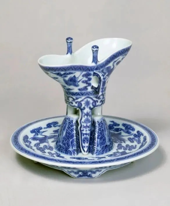 ▼清乾隆 青花云鹤纹爵、盘