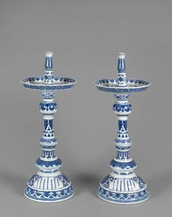 ▼清乾隆 莲花勾莲烛台(一对)