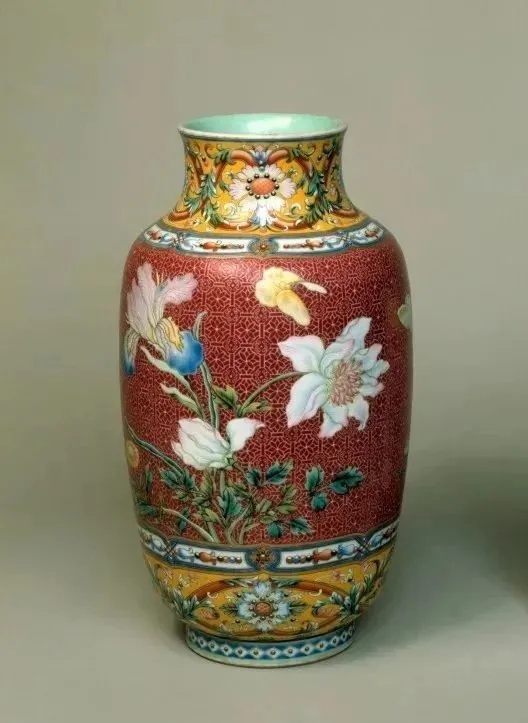 ▼清乾隆 紫地粉彩灯笼式瓶