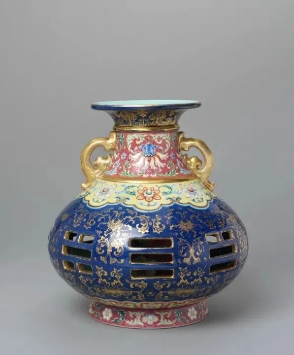 ▼清乾隆 粉彩镂空转心瓶