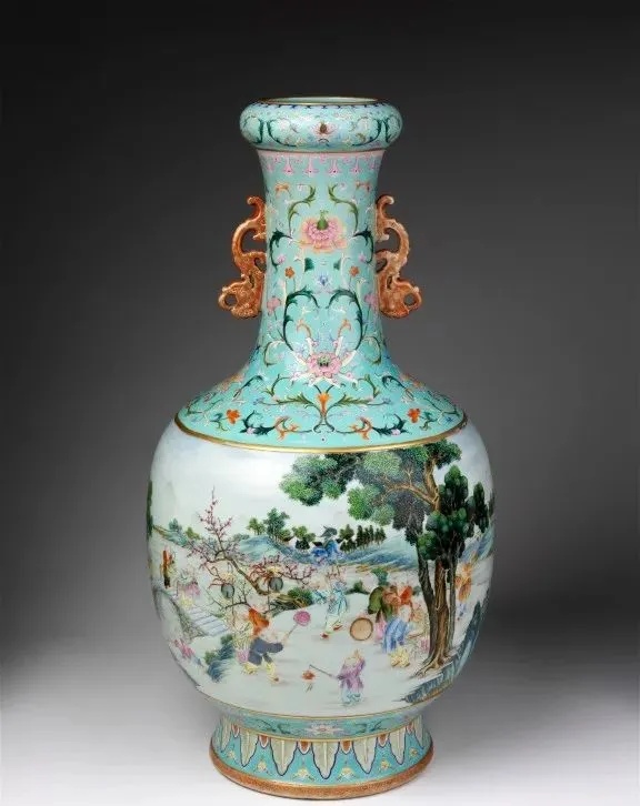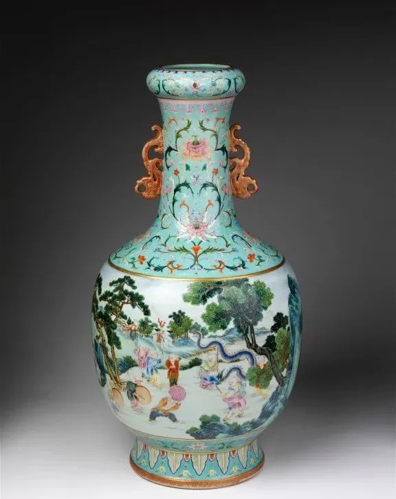▼清乾隆 粉彩婴戏螭耳瓶
