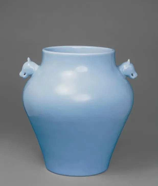 ▼清乾隆 淡蓝釉栖耳瓶